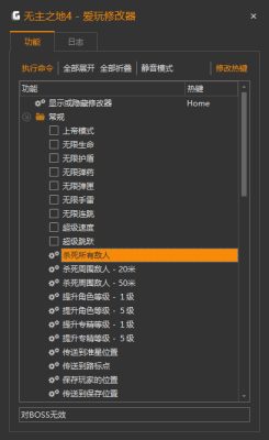 • 在全屏独占模式将不会显示修改器界面,但可通过热键激活或撤销功能