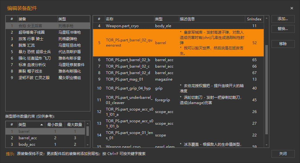 增强:对编辑装备配件功能加入了更多兼容性检测